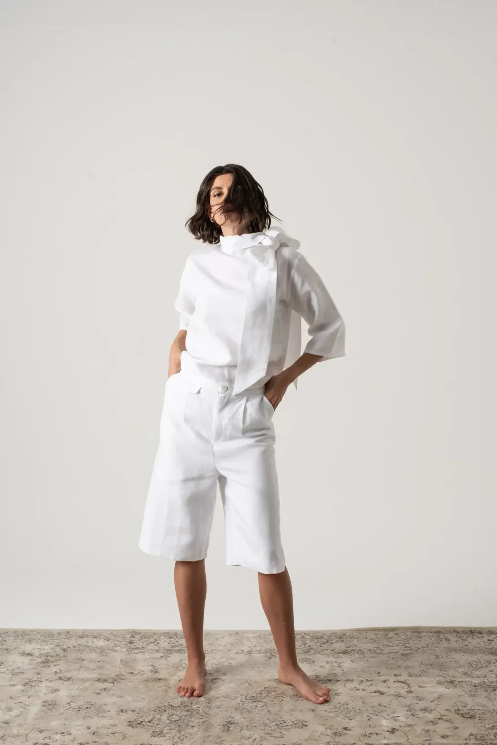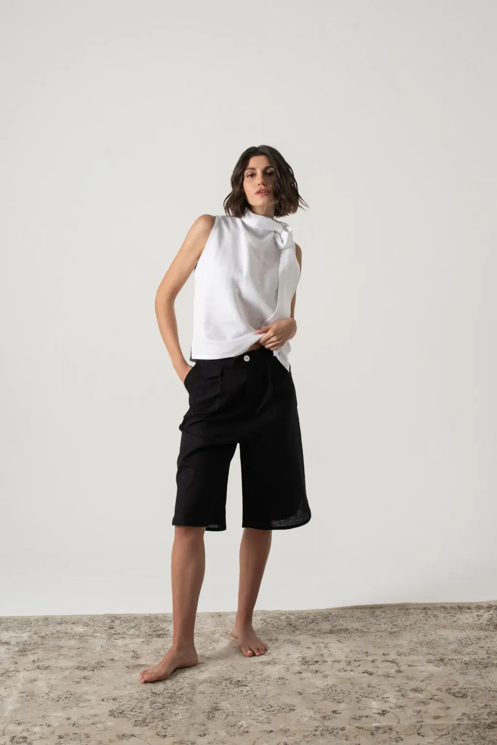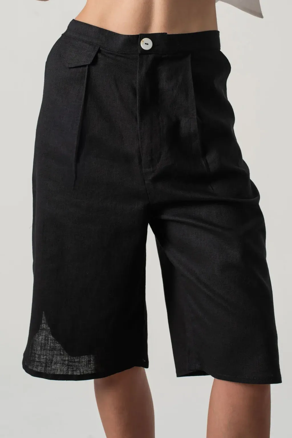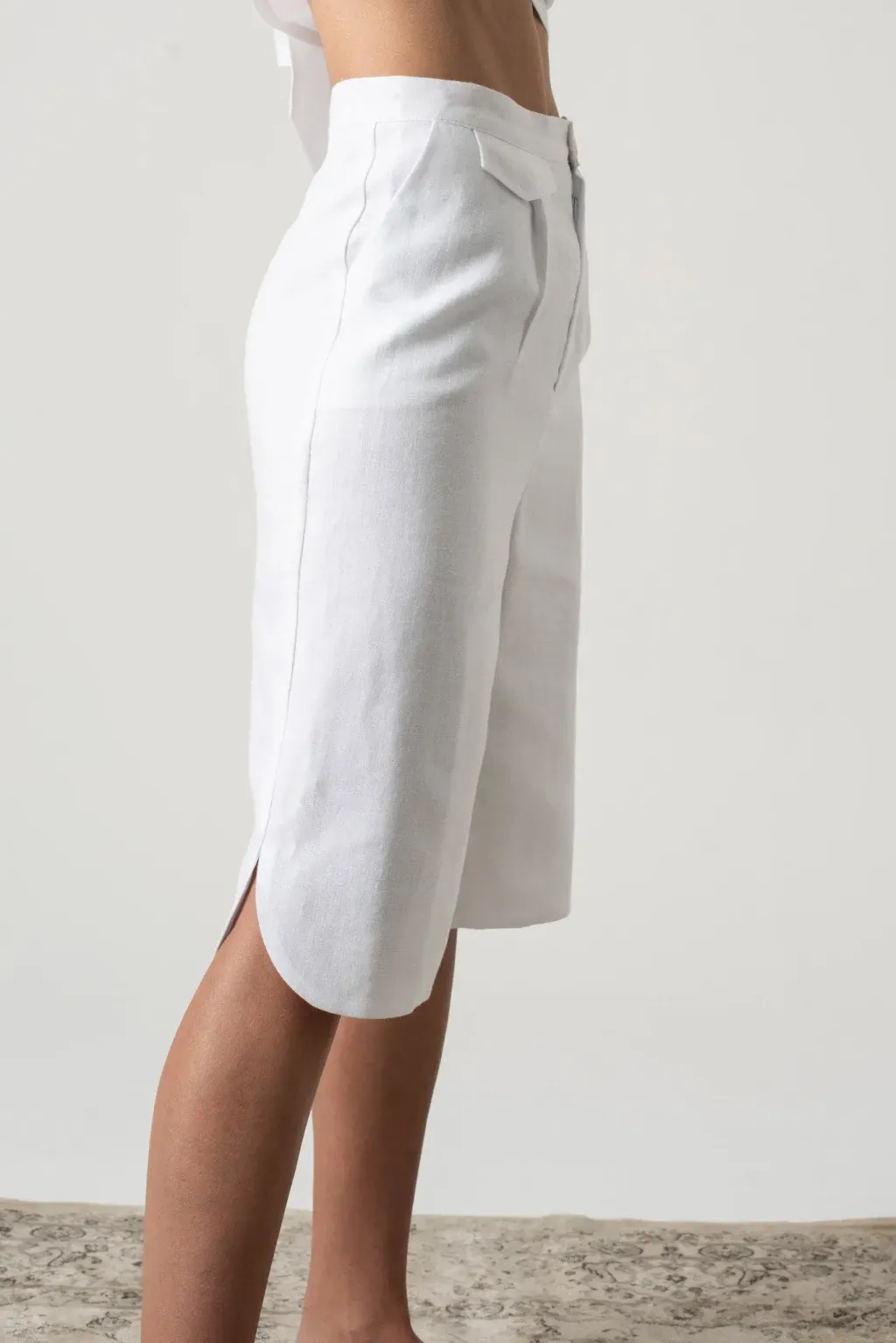 百慕達短褲(共兩色),是打造輕鬆優雅夏日造型的必備單品。這款剪裁合身的短褲擁有永不過時的經典輪廓,長度剛好及膝。 輕盈透氣,是溫暖夏天的理想之選。褲腳開衩設計且下擺輪廓是修圓弧型,細節設計總是讓人吸睛,搭配實用側袋,讓您輕鬆提升整體造型。