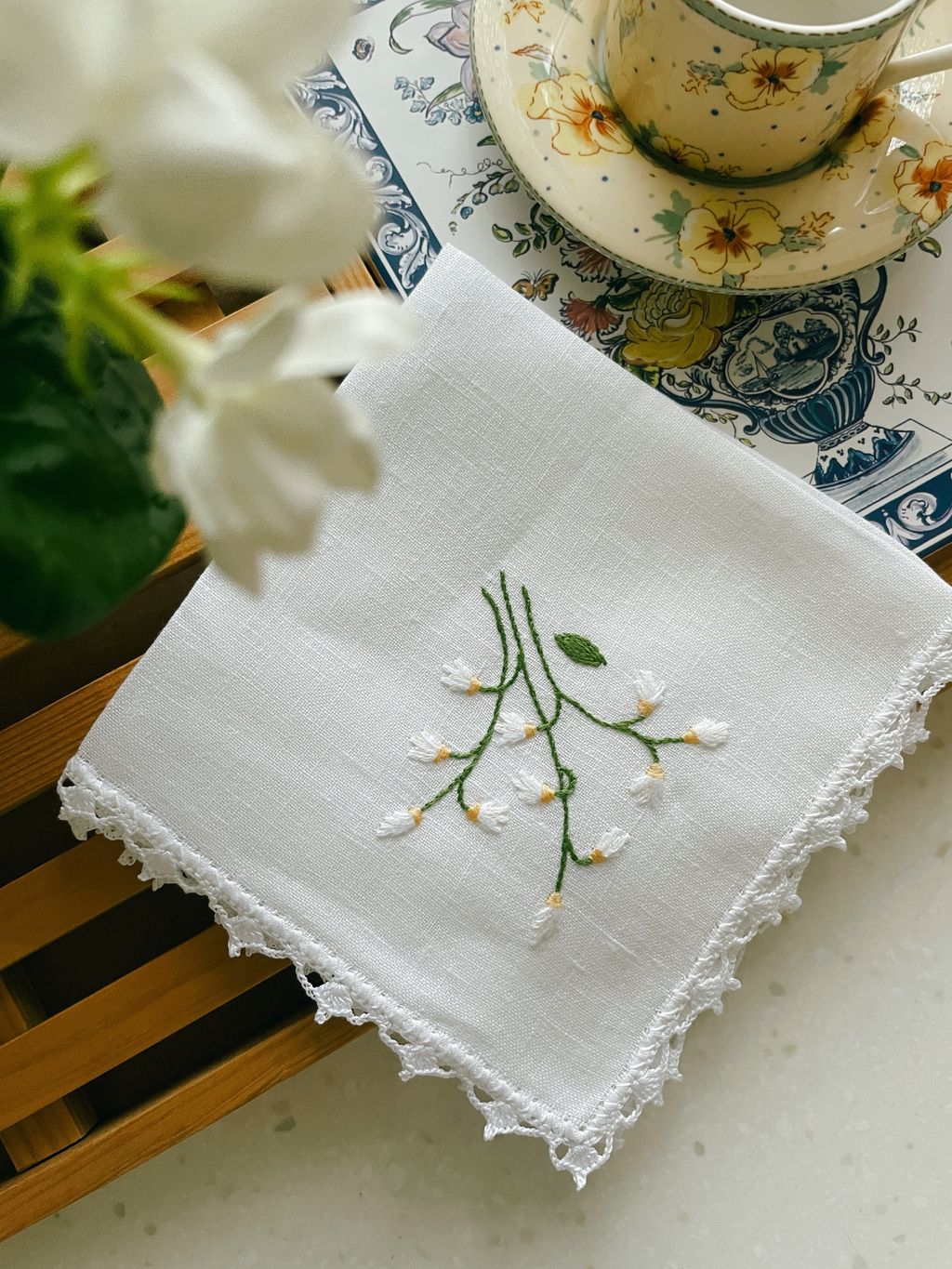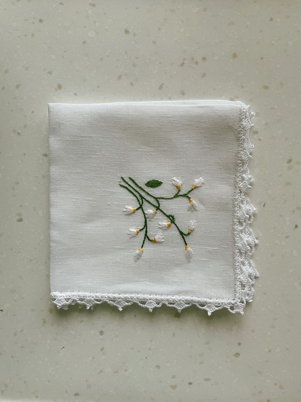 MilàCasa | 立陶宛亞麻鉤針蕾絲刺繡手帕 Handkerchief (純淨白)