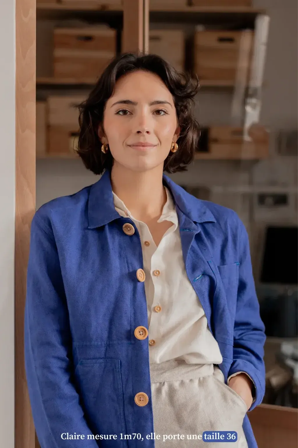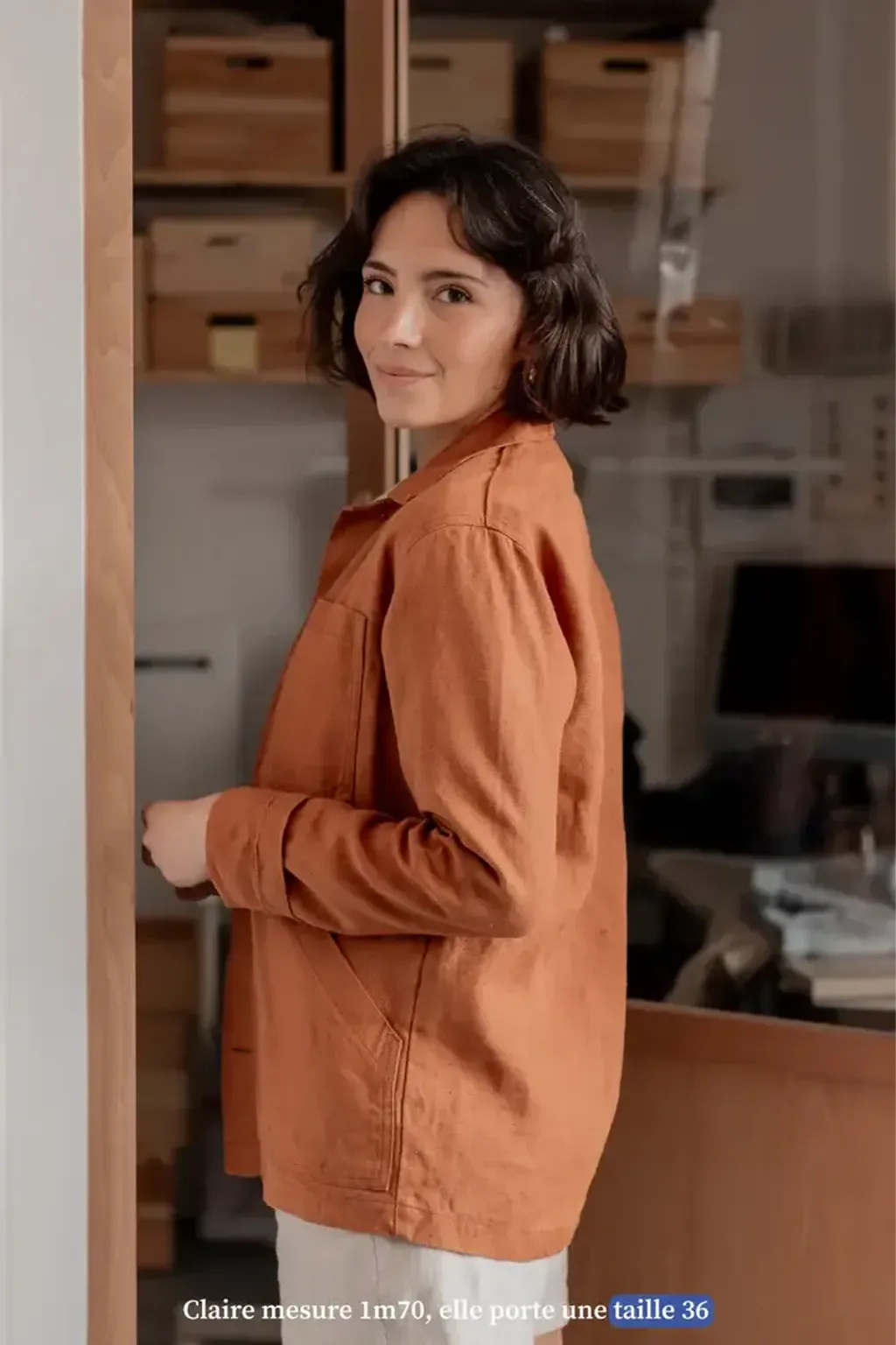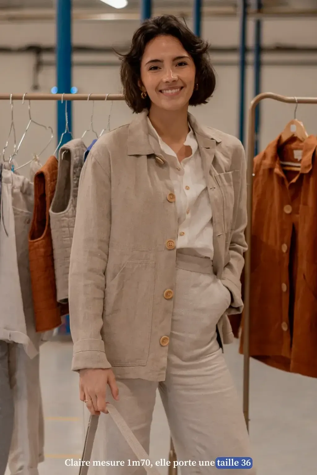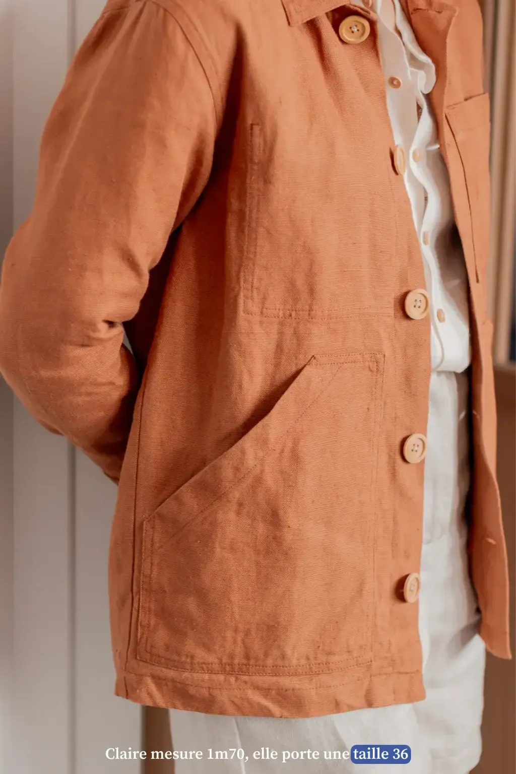 - 模特兒Claire身高170cm,圖中穿的是36碼的亞麻襯衫。