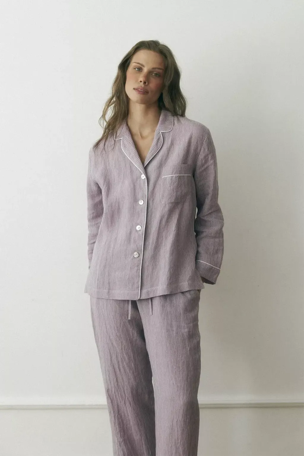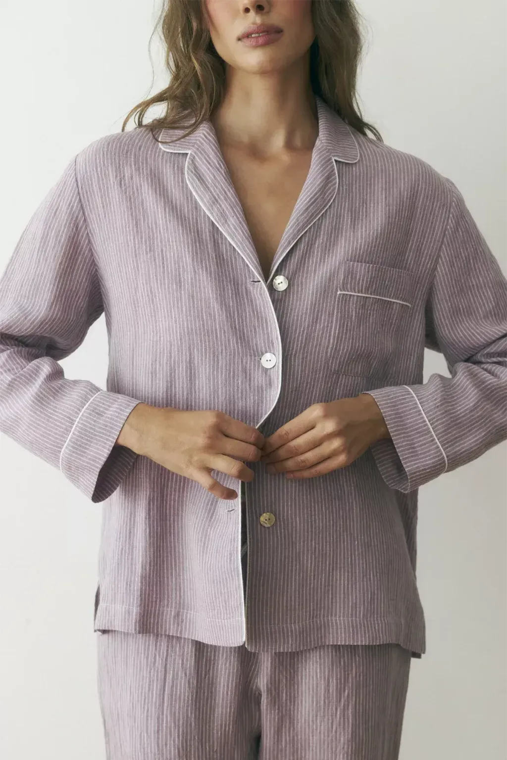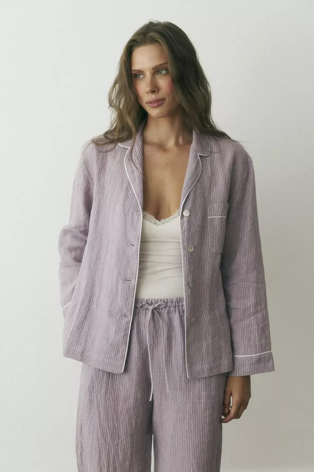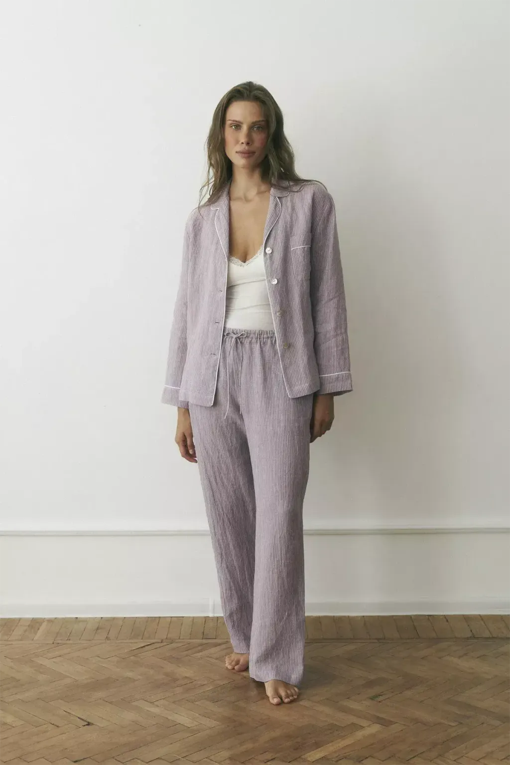 🍀 / 預購 / 烏克蘭品牌 ingreen 大麻 Hemp薰衣草條紋睡衣套組- WOMAN