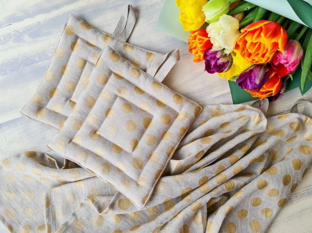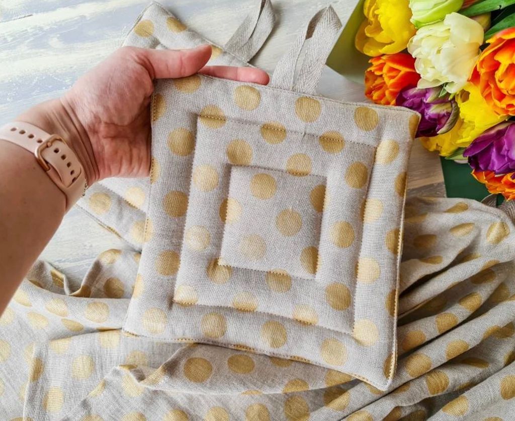 - 材質:100%天然柔軟亞麻(200gsm, 7oz),鍋墊填充物為合成纖維。
